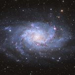 This image features the Triangulum Galaxy (M33), a barred spiral galaxy located approximately 3 million light-years away in the constellation Triangulum. M33 is the third-largest member of our Local Group of galaxies, following the Milky Way and Andromeda. It spans about 60,000 light-years in diameter and contains several regions of active star formation, including the prominent H II region NGC 604. M33 was likely discovered by William Herschel in 1784 and is considered a satellite of the Andromeda Galaxy.