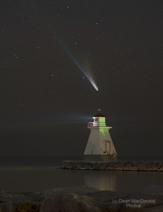 This image shows a wider field of Comet Lemmon (C/2025 A6) setting above the Southampton Range Lighthouse on October 26, 2025. Discovered in January 2025 by the Mount Lemmon Survey in Arizona, this long-period comet is slowly brightening as it makes its way toward perihelion in early 2026.
